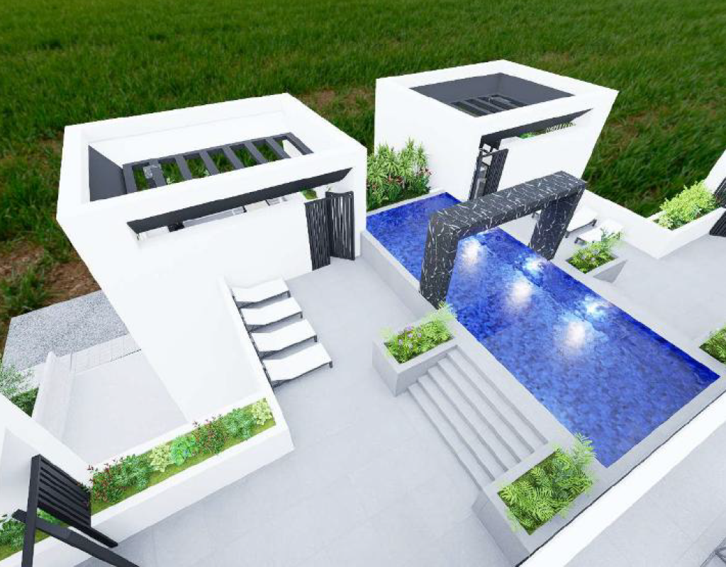 Exclusive communal rooftop area with swimming pool and roof garden