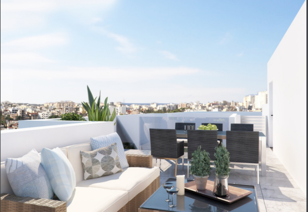 This modern penthouse apartment is located in the Sklaveniti area, close to the New Marina area and City Centre in Larnaca. It is very close to various amenities with easy access to the city center.The apartment consists of two magnificent bedrooms and two bathrooms, including an en suite in the master room. Also, it comprises a fitted kitchen, a comfortable living/dining room extended to a covered veranda, split units, double glazing, air condition, and a solar water heater.It has its own parking space and a storage room.Externally there is a roof garden with an amazing view.