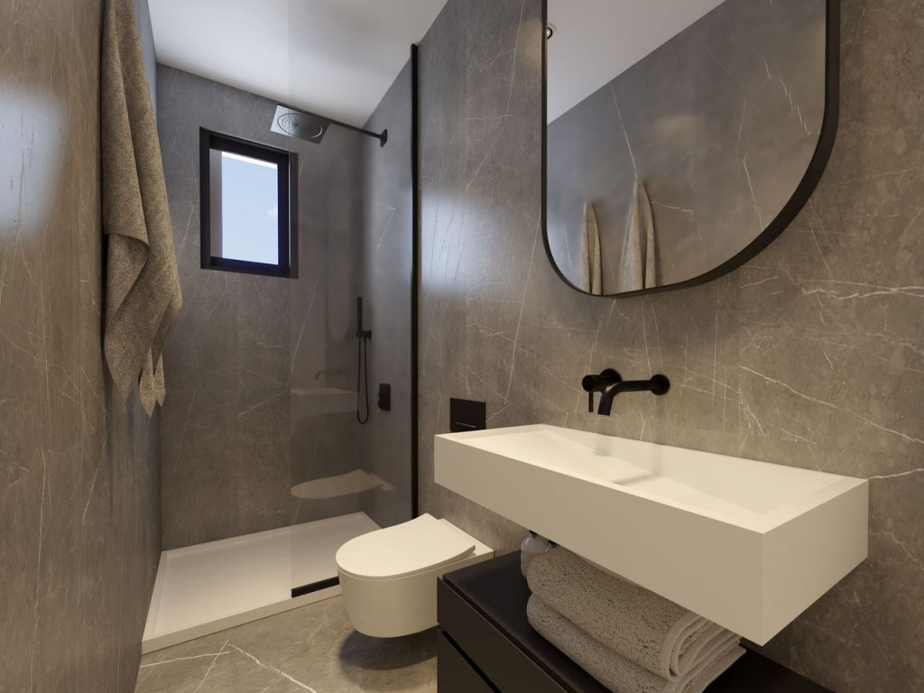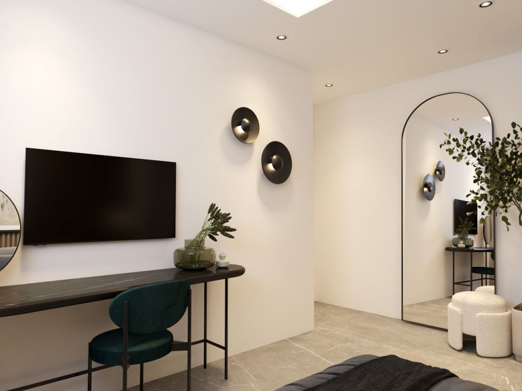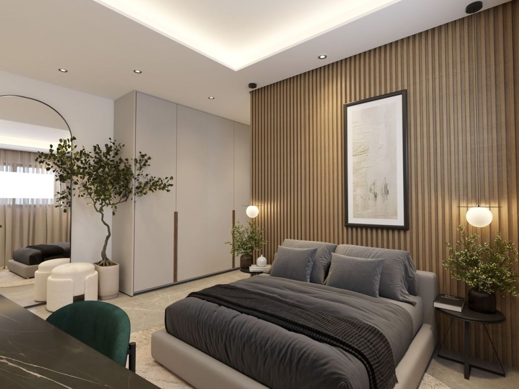 Luxurious and modern under construction 1-bedroom apartment for sale, located in Satiriko area, in Aglantzia. The apartment consists of an open plan fully fitted kitchen with a living/dining, one bedroom, one bathroom, and a covered veranda. The apartment has its own storage room and covered parking space. Various main and significant features are the installation of air conditioning split units, luxury materials, electric shutters in all bedrooms, high end thermal aluminium doors and windows, provision for central heating, installation of pressurized water system, provision for photovoltaic panels, video door phone, security system, and many more.Features