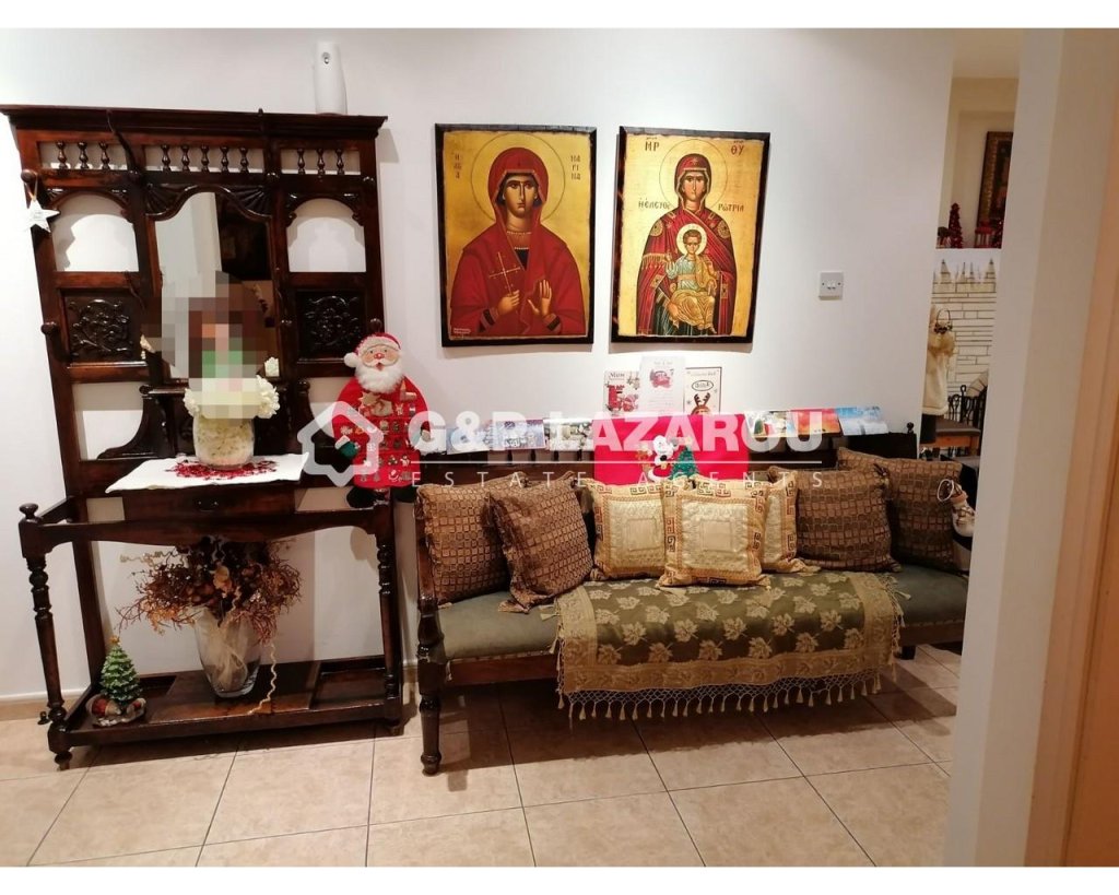A nice cosy ground floor apartment 170sqm located in a nice area of Strovolos near to all amenities such as church, schools, shops and many more is now available for sale. This house comprises a cosy sitting area with a fireplace, a spacious kitchen equipped with all electrical appliances and with a dining area available, three bedrooms sharing a family bathroom and two guest toilets. The house has a spacious veranda at the back side and a small one outside the kitchen area. The house has storage heaters and A/C available. In addition, the house has a covered parking for three cars.Features