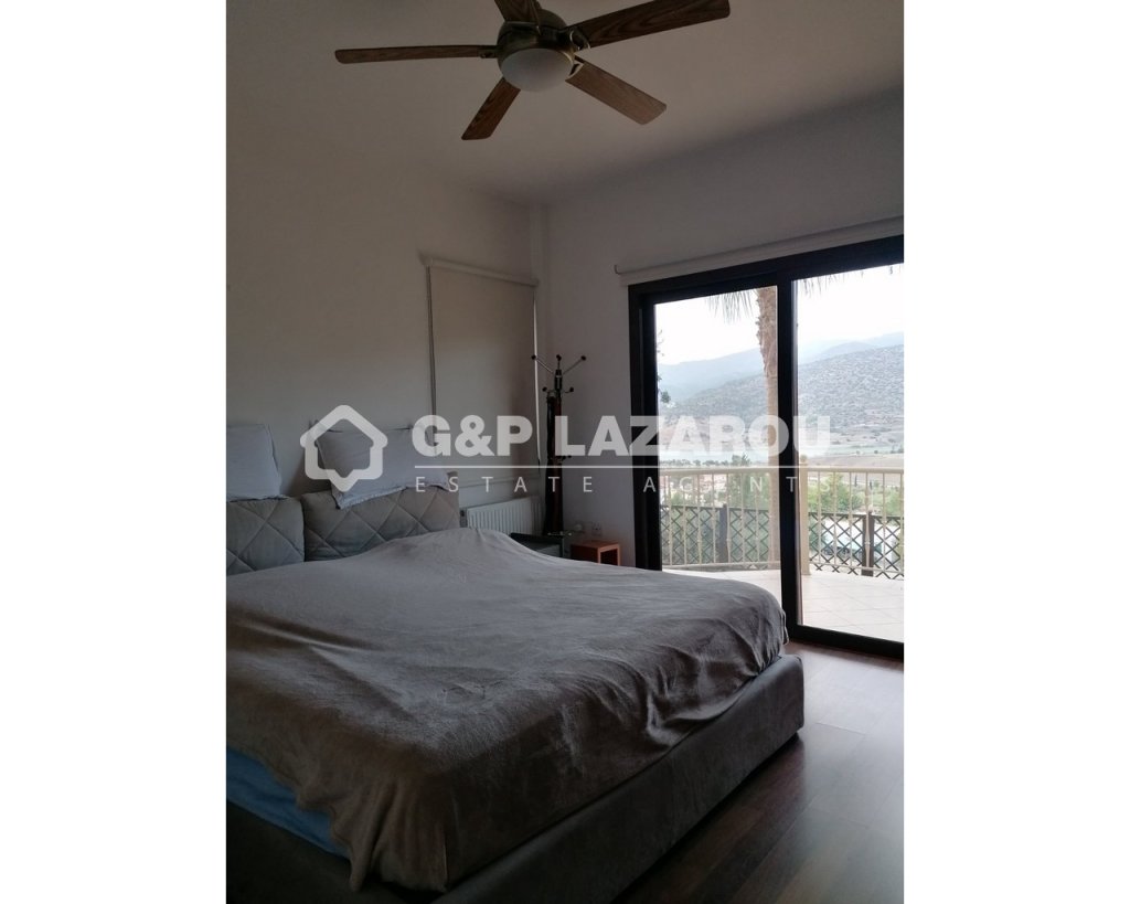 Stunning four bedroom house with pool, garden and maid's quarters for sale in Foinikaria village, in Limassol.Boasts panoramic and unobstructed views of the lake and the surrounding mountains, from all rooms and from all balconies. The property is constructed within a 1,100sqm land plot and features the main house, a salt water pool, maid's quarters, a garden and a large parking area. The 223sqm house is on two levels and consists of four double bedrooms, two of which are en-suite (the main with jacuzzi bath), two double bedrooms, a spacious open-plan living area and kitchen, extra kitchenette, laundry room and a guest toilet. Externally, it features balconies for all rooms that are interconnected and offer panoramic and unobstructed views of the Foinikaria lake and the surrounding mountains. There is also a small garden and a large parking area, suitable to host several cars. Part of the balconies (36sqm) are covered. The property also boasts a salt water pool with barbecue area and a separate pool house of 15sqm that can also be used as maid's quarters. The property is fenced and equipped with an alarm system. Considering the outstanding natural environment of Foinikaria, the tranquility and the views, the house is a perfect refuge for couples and families that wish to live near the nature, in a secure environment which is easily accessible from Limassol city.
