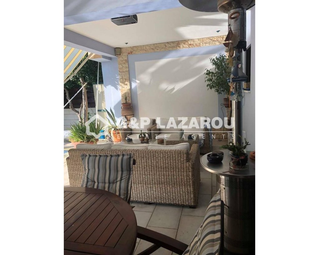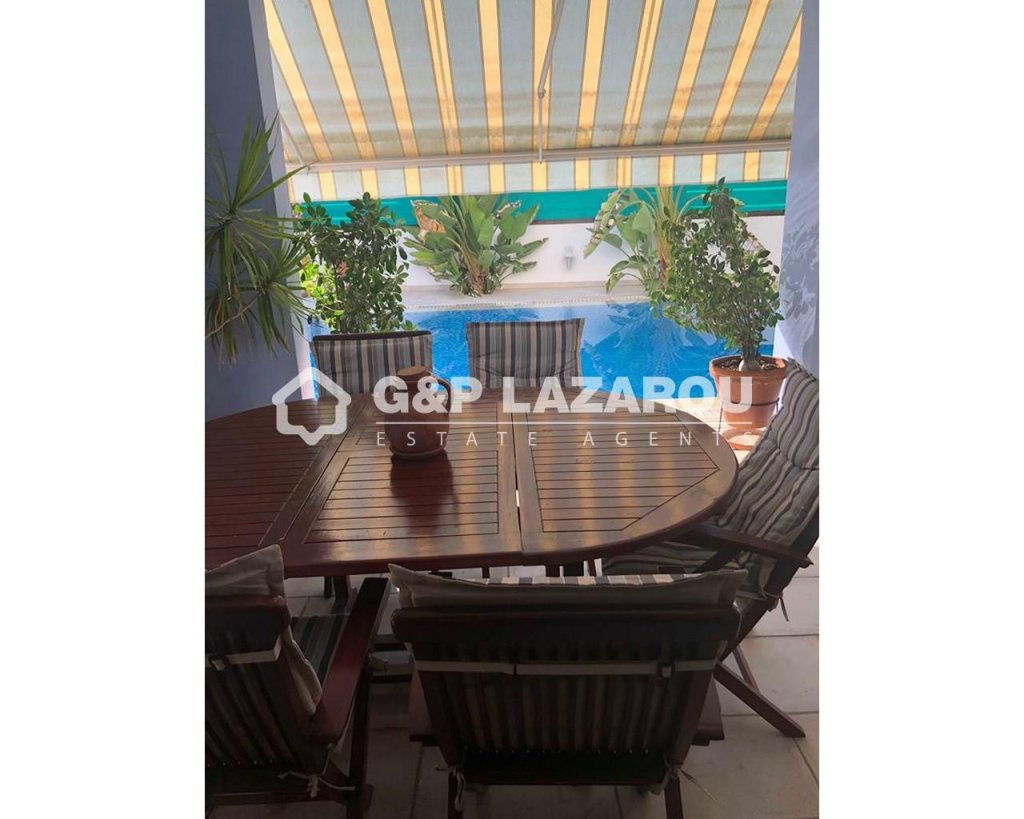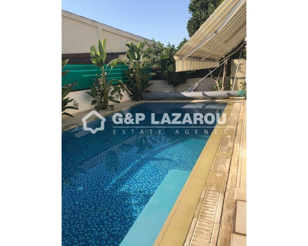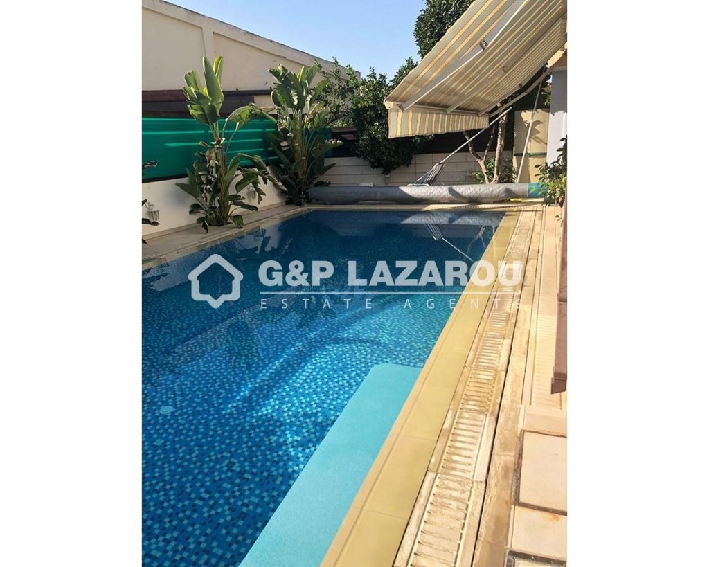 Nice Semi-detached house in Engomi. This beautiful house consists of a paved patio, private swimming pool and a garden. It offers wonderful spaces from comfortable living/dining room to a spacious kitchen with all electrical appliances. Next to the kitchen there is a laundry room and a cozy living room. Upstairs there are three bedrooms one with en-suit and 1 full bath. The backyard features a beautiful garden. Other features include electric heating/air-conditioning and many more. Also there are photovoltaic panels 3kv.Features