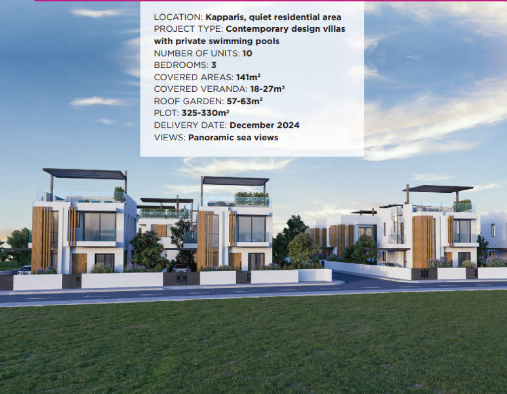 The project comes with an optional roof terrace ensuring uninterrupted sea and mountain views, at a short walk distance to the nearest beach. This modern and stylish complex is situated in the resort of Kapparis, a hidden gem that very few know about, approximately 5km north of Protaras.Kapparis is a small, friendly, year-round resort, steadily increasing its popularity among holiday home buyers. There are numerous coves and beaches along the coastline, giving you the perfect opportunity to sunbathe in peace and enjoy the golden sands and beautiful crystal clear waters. If you do not feel like driving, there is easy access to the bus network connecting towns and resorts that make up the southeastern coast. If you feel adventurous, an array of watersport activities including water skiing, paragliding, windsurfing, etc. is awaiting.