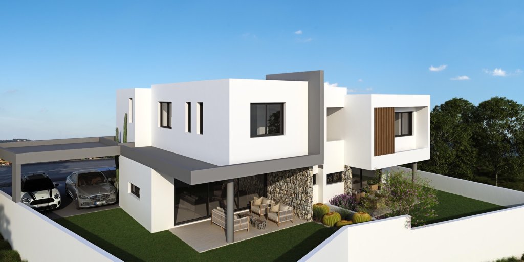 Luxurious and modern under construction semi-detached house in GSP close to all amenities and services. The construction of the house will be based on high quality and luxurious materials. The ground floor comprises an open plan kitchen with a living/dining area and a guest toilet. The first floor comprises three spacious bedrooms (including the master bedroom with an en suite shower), and a family bathroom. Externally, the house benefits from a covered veranda with a big garden and a covered parking space.Features