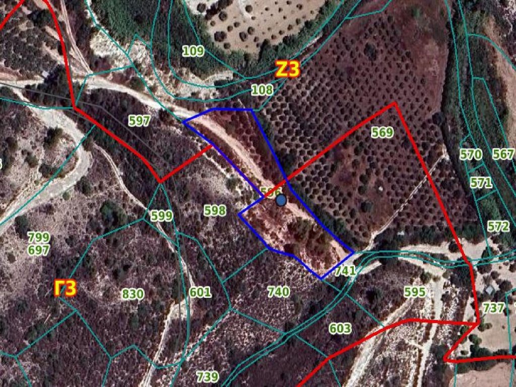 Agricultural field in Kato Drys village in Larnaca District.It is situated at a distance of approximately 2 Km southwest of the center of the village and approximately 700 meters south of the road connecting the villages Vavla and Kato Drys.It has a irregular shape and uneven land surface. Access to the property can be gained via a non-registered dirtroad.It falls within the Agricultural Zone Γ3 (54%), having building density coefficient 10% and within the Protected Zone Z3 (46%) having building density coefficient 1%,Features