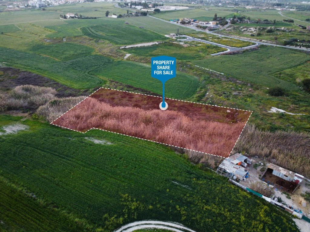 Available for sale is the 1/8 share of a field, which corresponds to an area of approximately 659sq.m, in Apostolos Loukas quarter, in Aradippou Municipality, in Larnaca district. It is situated 1.9 kilometers southeast from the centre of the municipality and approximately 2.0 kilometers south from the motorway connecting Larnaca and Famagusta.It has a regular shape and an uneven surface. The property is considered landlocked, however it is situated only a short distance from the closest public registered road.It falls within the Residential Zone Γα4-Κα7 (82%) and within the Protected Zone Δα2 (18%) having building density coefficient 1%.Features