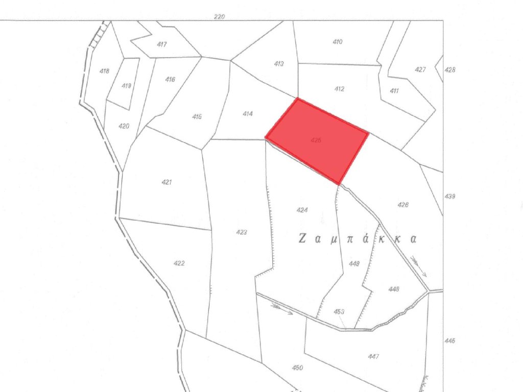 Available for sale 1/3 share of a tourist field, which corresponds to approximately 622 sq.m., in the area of Agros community. It is situated 880 meters (approx.) southwest from the community’s center and210 meters northwest from the connecting road Agros - Potamitissa.It has a trapeze shape with a sloping surface and is enclosed. The property is approximately 180 meters west of the nearest registered road and abuts onto a stream along its south-west boundary.It is set in a tranquil, beautiful natural environment.The zone in which the property falls allows tourist / residential development such as residences, tourist complexes of houses and possible hotel units.Features