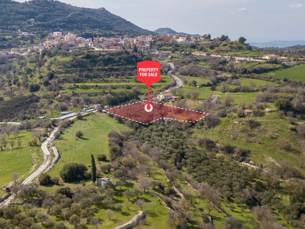 The property for sale is a residential field that lies within the administrative boundaries of Dora village, in Limassol District.It is located in a quiet and beautiful area, 400 metres northeast of the village’s centre and is adjacent to the connecting road Dora - Anogira.It has a north-eastern slope and beautiful views of the wider area.It has a building density of 60% which makes it suitable for residential development (holiday or primary residence).Also an important advantage to this property is that it has 67 meters frontage on a registered road.Within the parcel there are olive trees.Features