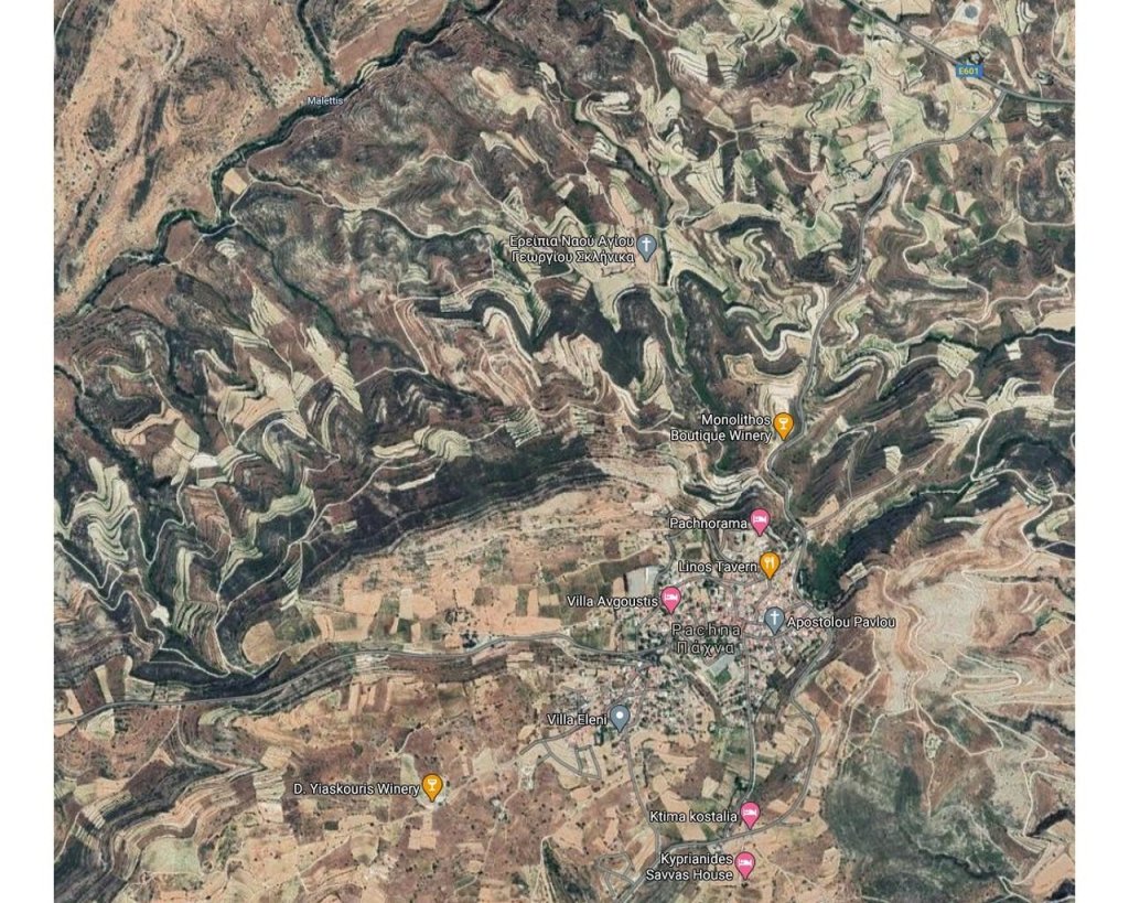 Agricultural field for sale, located in Pachna village in Limassol.The field has an area of 10,703sqm and is landlocked (c. 50m southeast of the nearest registered road). The immediate area comprises of agricultural and undeveloped parcels of land. The asset falls within the Agricultural Planning Zone Γ3, with building density coefficient of 10%, coverage coefficient 10%, maximum 2 floors and a maximum height of 8.3m. Not subject to VAT.
