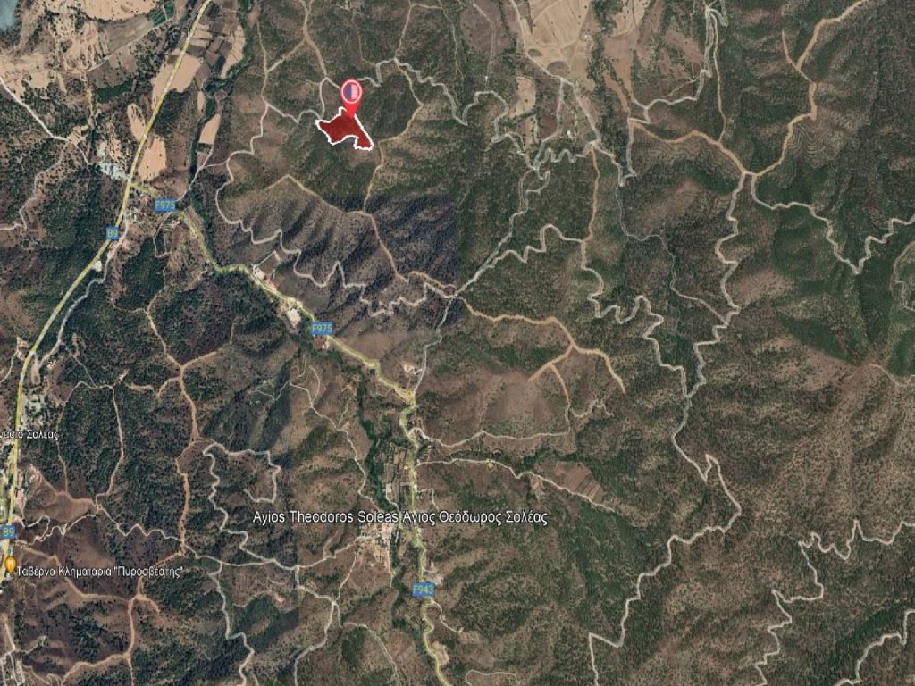 Available for sale the 1/3 shares of an undivided agriculture field, which corresponds to approximately 10,442q.m.,in Agios Theodoros (Soleas) community of Nicosia District. It is situated at a distance approximately 1,800m southeast of the community’s center and approximately 885m east of Evrichou community.It has an irregular shape with an uneven land surface .The property abuts onto a registered dirt road onto its north boundary,abuts onto its southern and northen boundary onto a strea and onto its east boundary with government land.The property falls within the Protection Zone (Z1) having building density 6%.Features