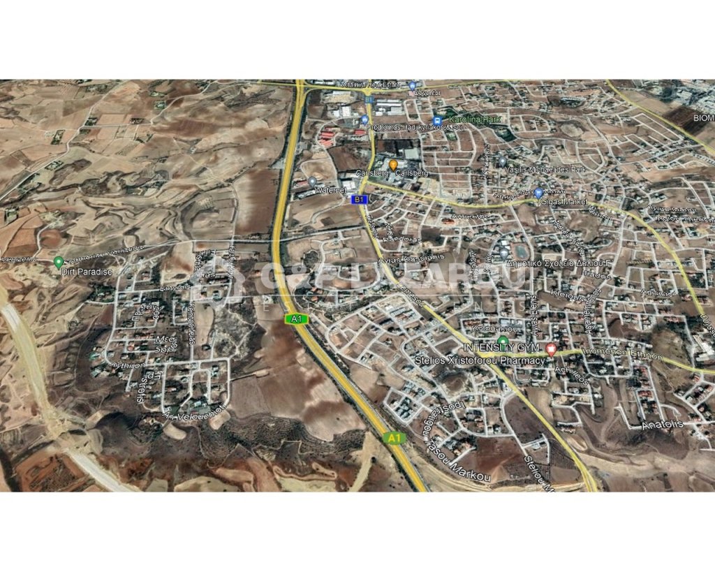 Residential plot, located in Dali, is available for sale. The land falls within the residential planning zone Ka8 with a maximum building density coefficient of 60% and a coverage coefficient of 35% over 2 floors and 10 metres height. Title deed is available.Features