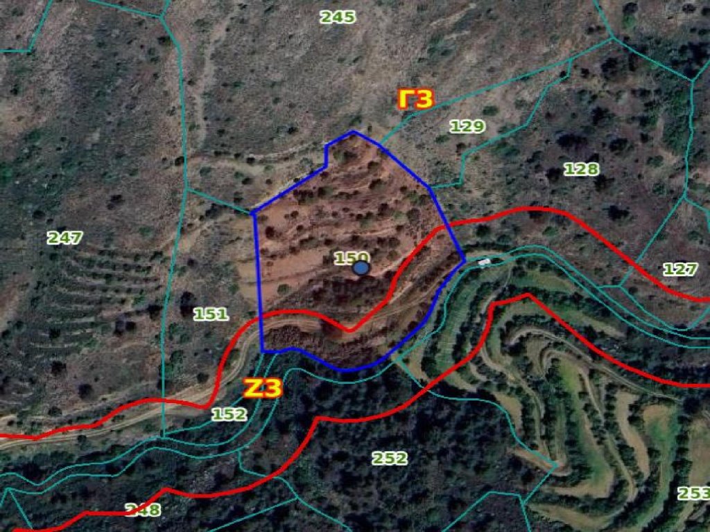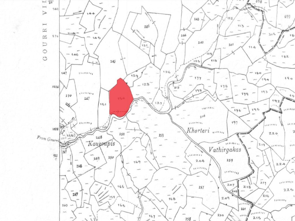 Agricultural field in Gourri community of Nicosia district. It is situated at a distance approximately 1.2 km northeast of the community center and approximately 850 m north of Gourri - Figardou road connection.It has an irregular shape with an inclined surface and it is accessible though a non-registered road.The property falls within the Agricultural Zone Γ3 (70%), having a building density of 10% and within the Protection Zone Z3 (30%), having a building density of 1%.Features
