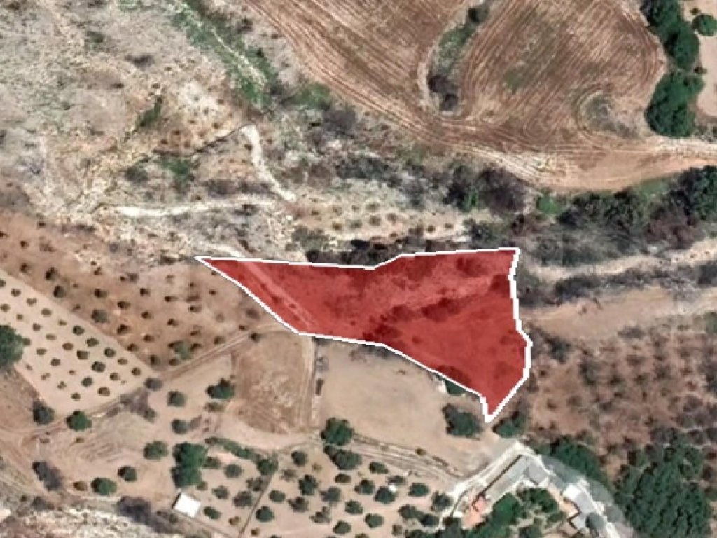 Agricultural field in Drymou Community of Paphos District. It is situated at a distance approximately 350 m northwest of the Community center and approximately 1.1 km west of Lasa - Simou road connection.It has an irregular shape and a slopy surface. It abuts onto a public registered road along its southwestern boundary with frontage of approximately 7 meters.The property falls within the Agricultural Zone Γ3, having a building density of 10%.It is noted that the property abuts the residential zone.Features