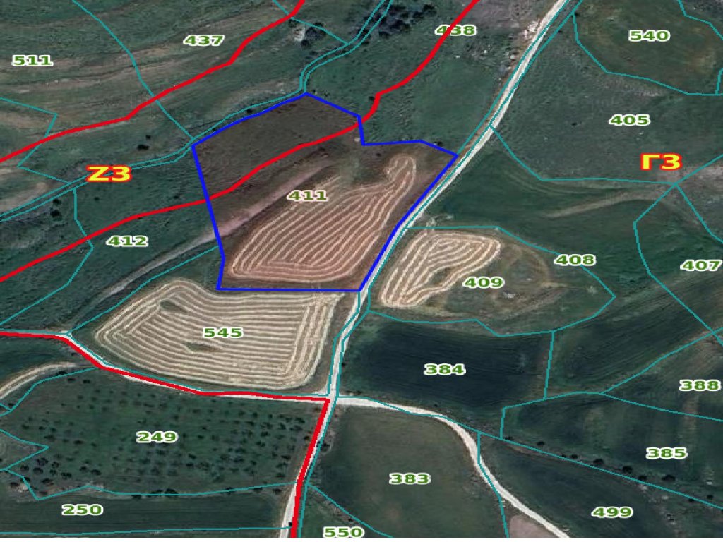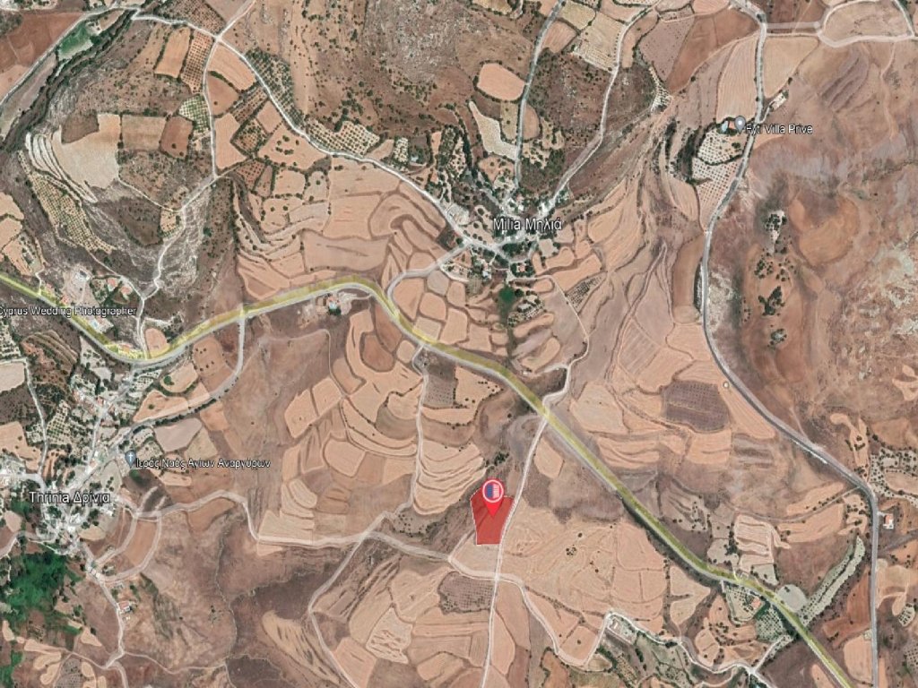 Agricultural field in Milia community of Paphos district. It is situated at a distance approximately 500 m south of the community center and approximately 230 m south of Agios Dimitrianos - Milia road connection.It has a regular shape and an inclined surface. It abuts onto a public registered road along its eastern boundary with frontage of approximately 94 meters.The property falls within the Agricultural Zone Γ3 (77%), having a building density of 10% and within the Protection Zone Z3 (23%), having a building density of 1%.It is worth noting that the property is approximately 300 meters south from the nearest residential zone of the Community.Features